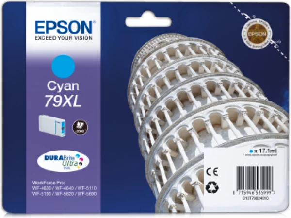 Pisai ferdetorony; 17,1ml No.79XL *Hozzáillő alapkészülékek: *WorkForce Pro WF-5110DW *WorkForce Pro WF-5190DW *WorkForce Pro WF-5620DWF *WorkForce Pro WF-5690DWF |